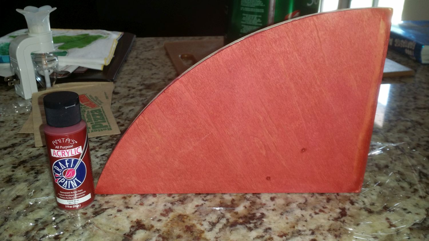 So... I made one more trip to the craft store. I bought four more shades of reddish acrylic craft paint. Tried all four on my last scrap of maple plywood (actually a router template for another project...and bingo! One of them actually looked good! It took 8-10 tries, and seven little bottles of craft paint, but since all the bottles were under $1 apiece, even the errors did not break the bank.