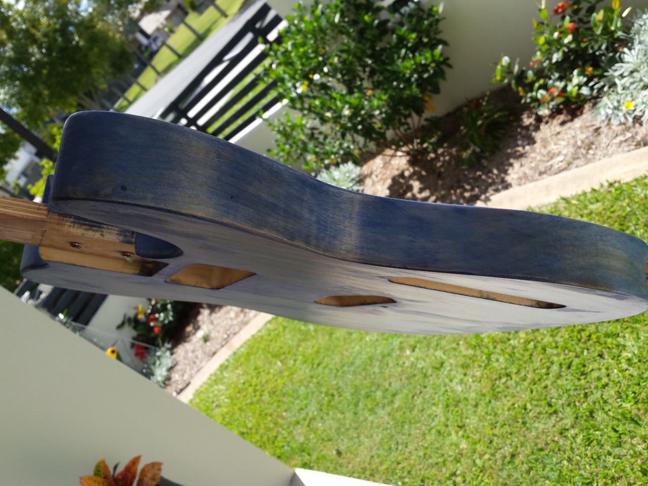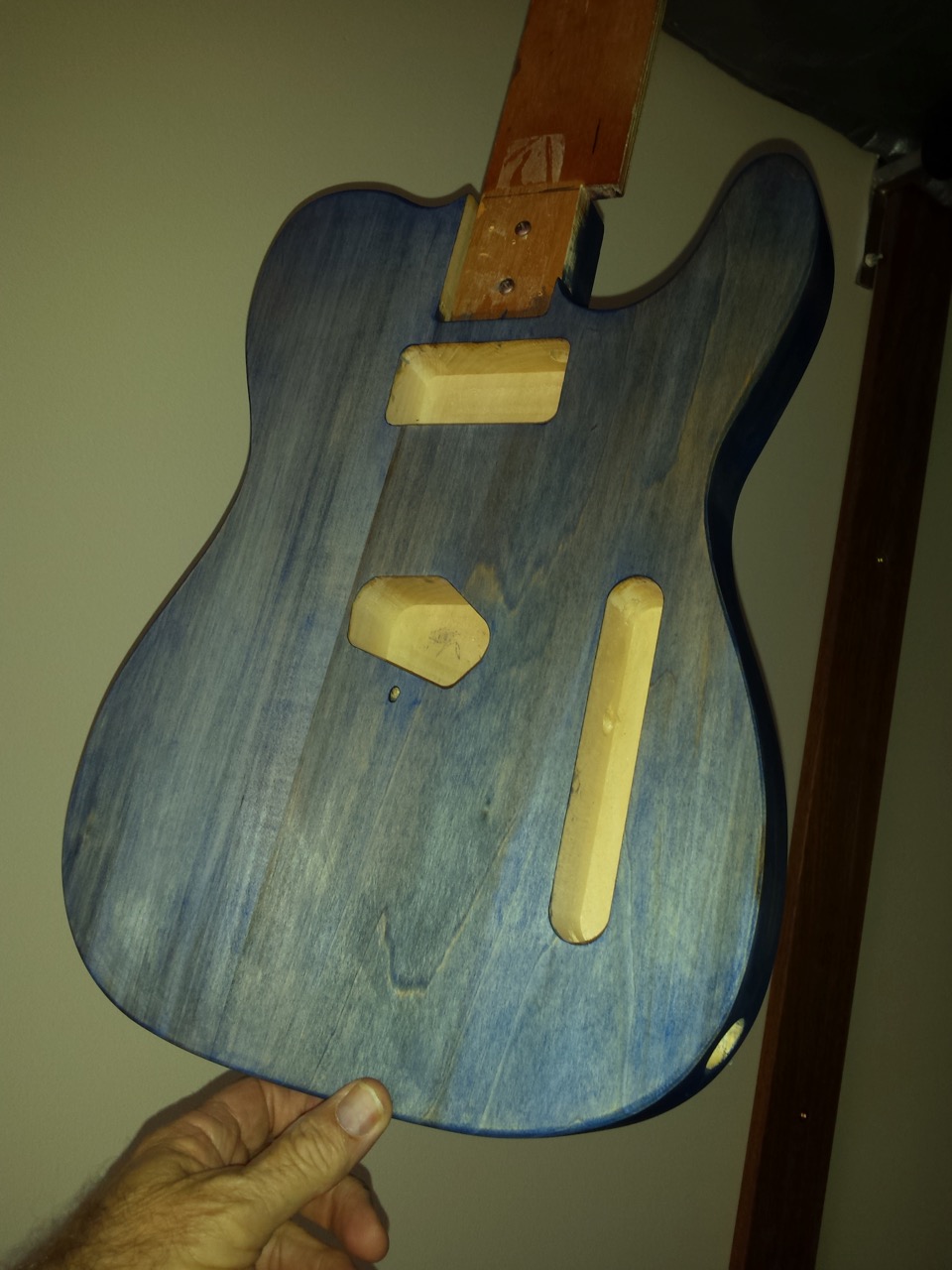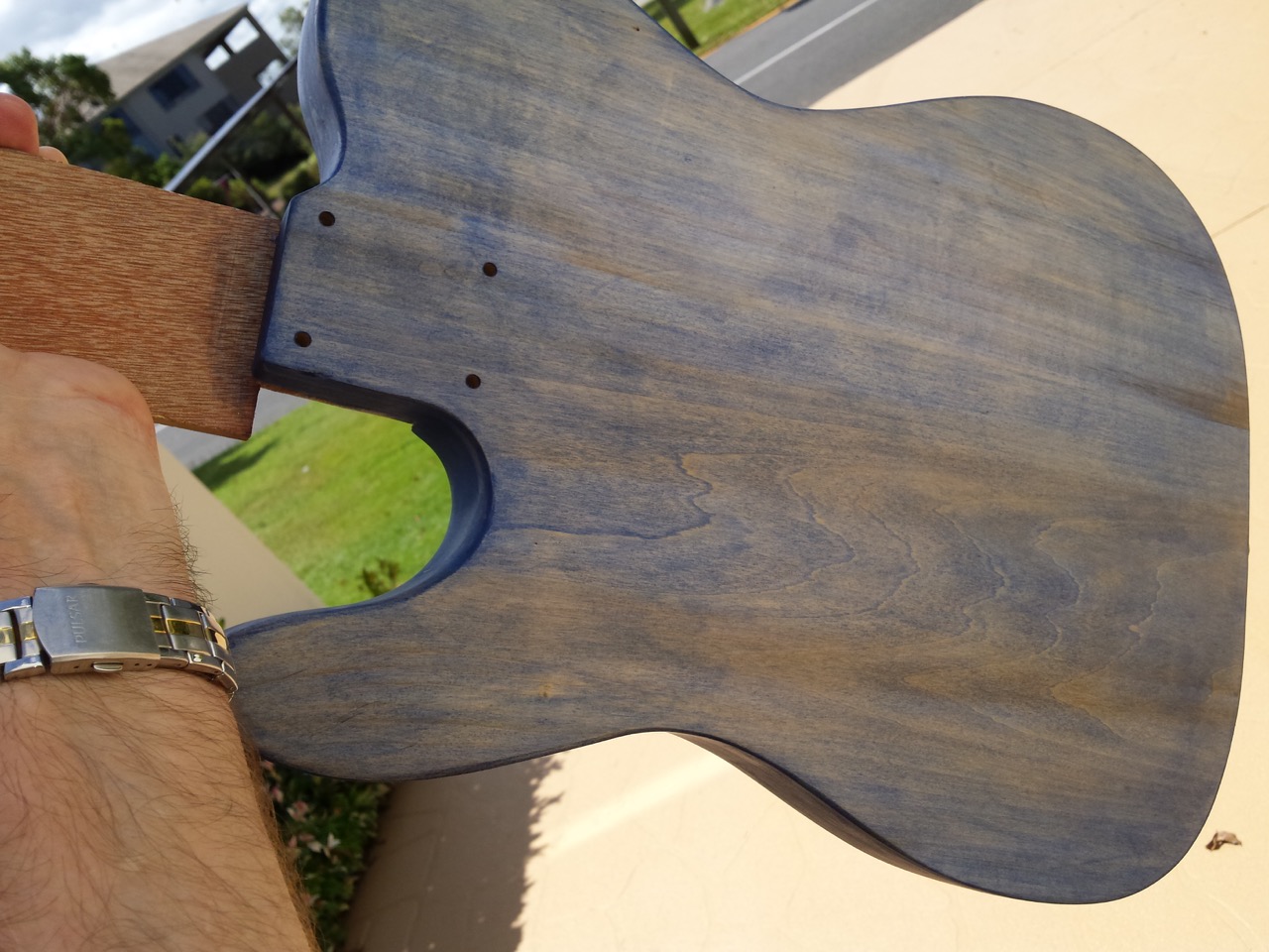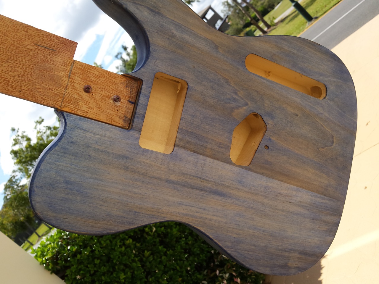Saw on a thread a while back where a guy went to Officeworks and bought Blue ink pad refill ink and from memory think he diluted it in water and applied that as a stain. End result looked good and was not as washed out looking. Still think the surface might be too smooth and shiny to take a stain as I am having similar problems with a maple neck that is super smooth. Too far gone for me though and just loading the neck up with multiple stain coats and hope the intensifier adds more depth once applied.