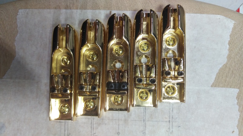 Great job with the brass cover plate and kudos for your perseverance with the individual bridge pieces, that part would have driven me nuts. Also loving the Gold hardware and how the whole colour scheme comes together.