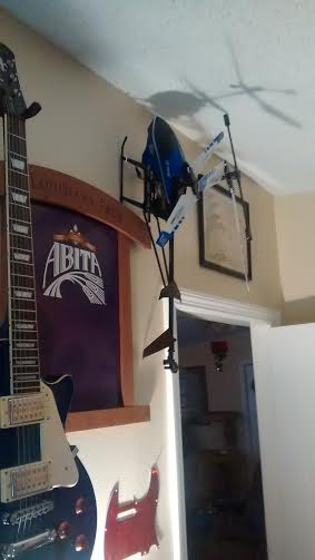lol no I have several od ball items on the walls here .......and new stuff gets tacked up all the time there is a tort shell stat guard for an HH strat on the wall to.....I dont have an HH strat so....there it is..... old 45rpm records...... Lever action rifles......compound bows.....Margaritaville clocks.......and this guy my "mini Eddie"