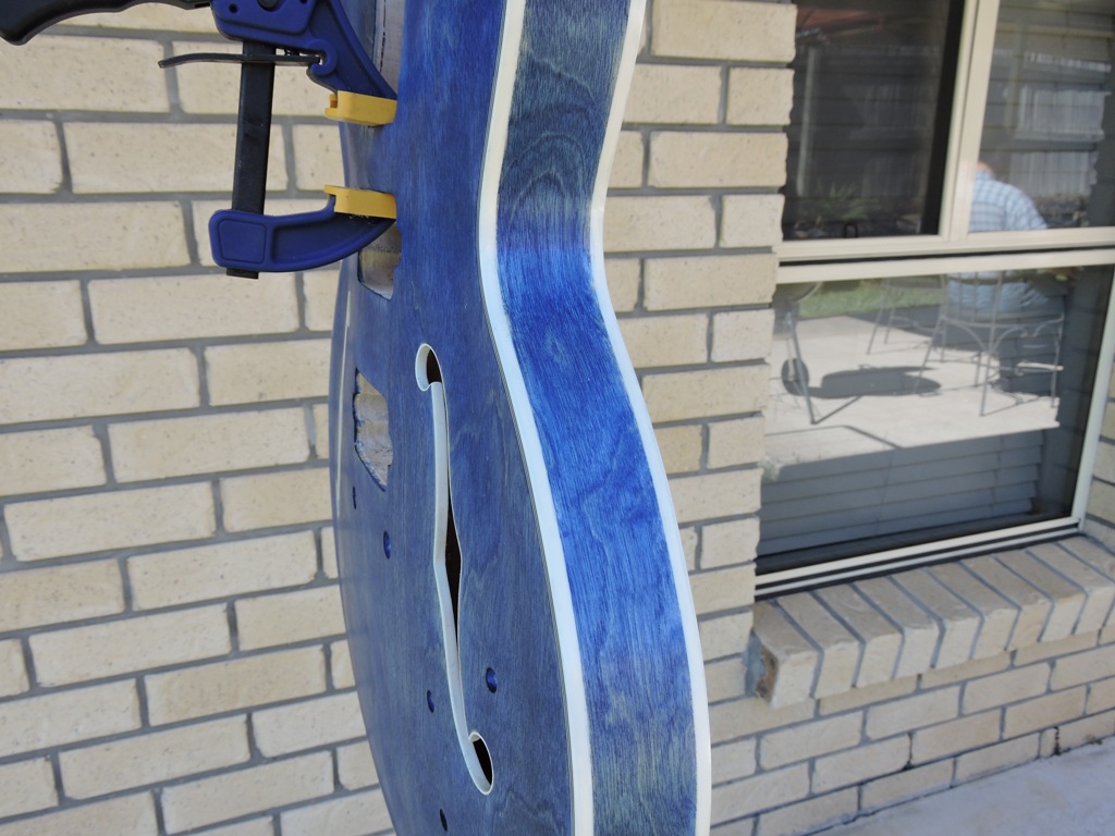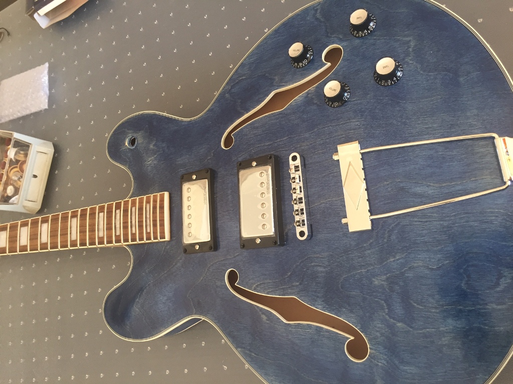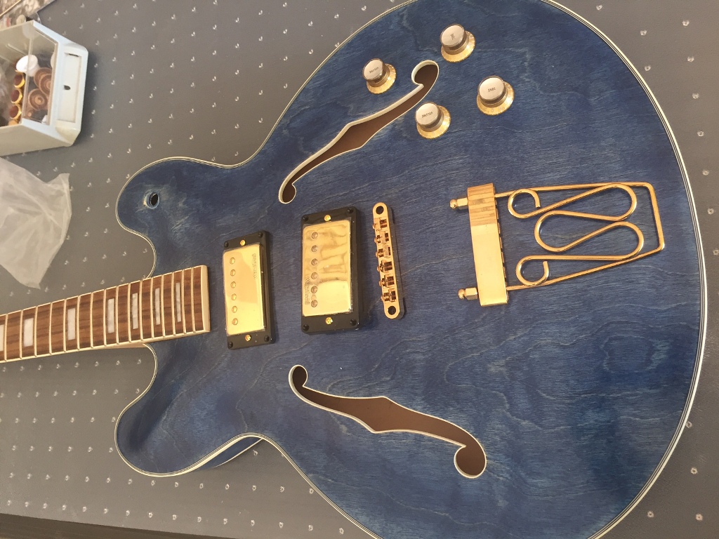Fair few coats in now and looking at what hardware to fit. Originally though that silver would match the colour over gold due to the shade of blue, but thinking the gold sets it off more. Few more coats of TO and think the body will be ready to polish and start assembling.