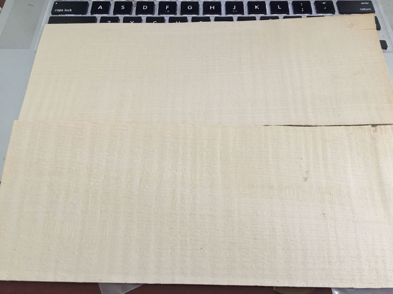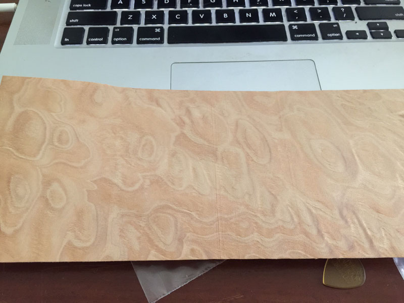 The flamed maple veneer is only roughly finished but seems to have a nice flame. I won't know how good until after a lot of very careful sanding...