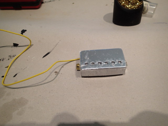 Put your screws back in making sure everything lines up, re-solder the cover and your done, new A5 humbucker