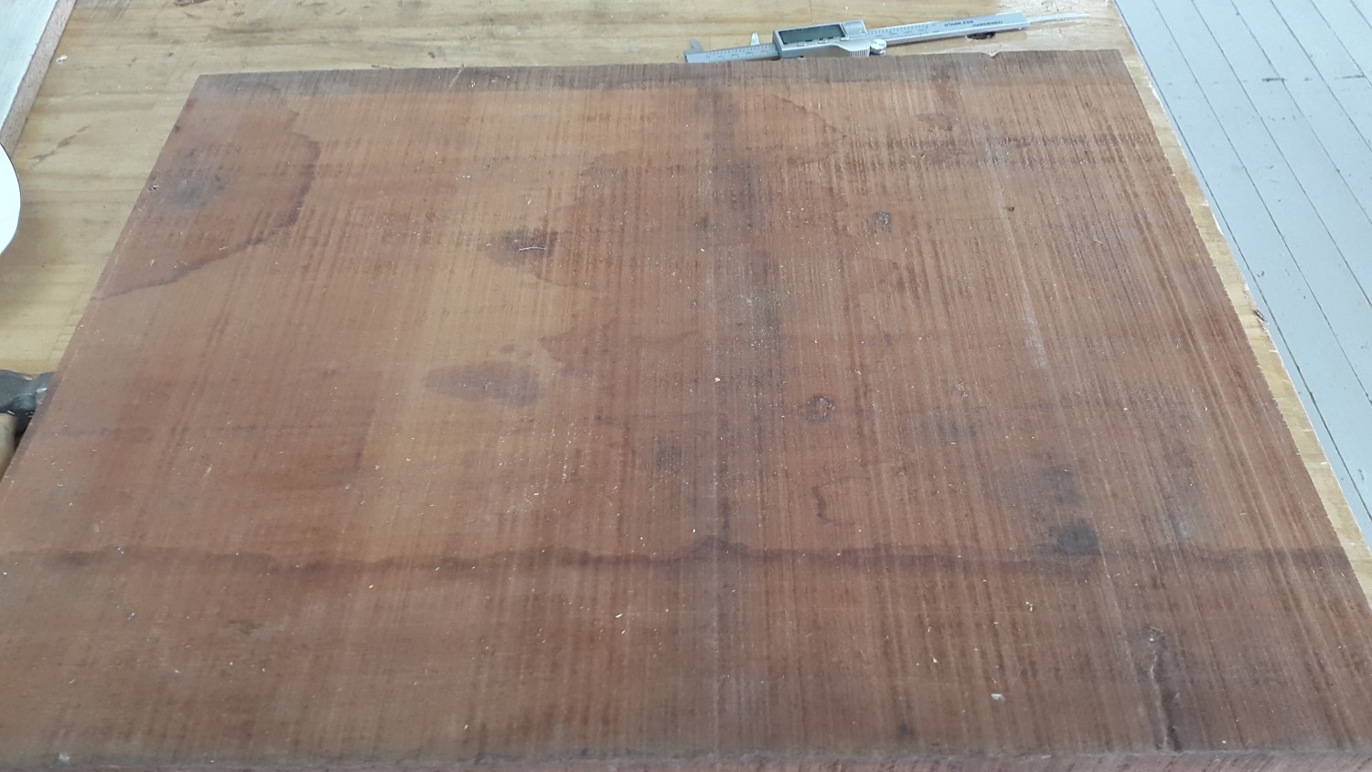 Finally, cleaning up the Jarrah top. This was basically just running it through the Drum Sander a bunch of times, levelling out the rips from being cut and so on, and getting rid of all of the glue. I looked at it after that had been done and was a little disappointed because it looked like the figure was going to be much tamer in the centre, but we popped some Metho on it to bring out the figure and it's DEFINITELY there, and definitely heavily figured. Will make sure I get photos of that next week.