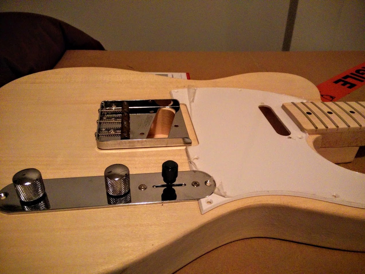 Mark where the bridge should be placed to give you intonation - let me know if you need some tips on that. Fit the pickguard to get an idea also