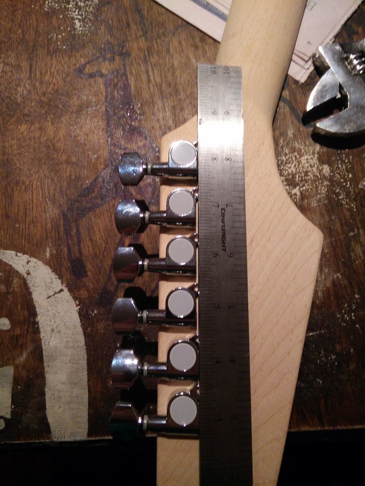 First step was machine heads. The holes aren't exactly straight, which seems to be a thing with some of these necks, but honestly not enough for me to replug and redrill.