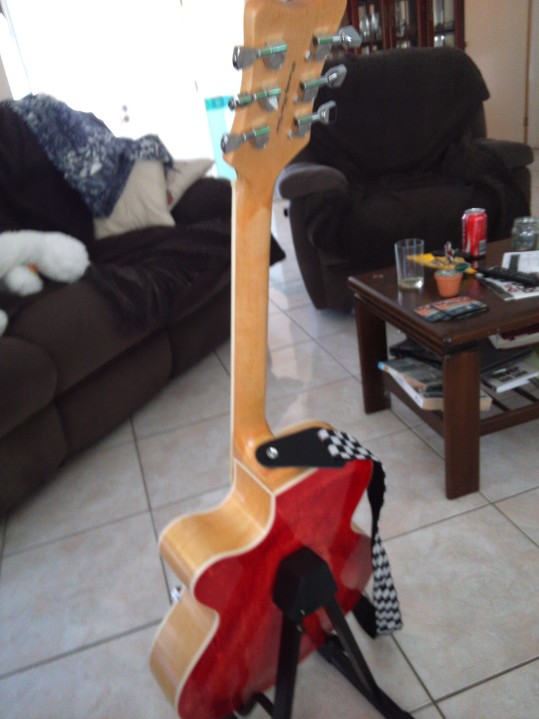 Hey Caesar nice build well done. Just need a close up of the headstock please. Love the natural sides and neck look really cool with the red back and front.