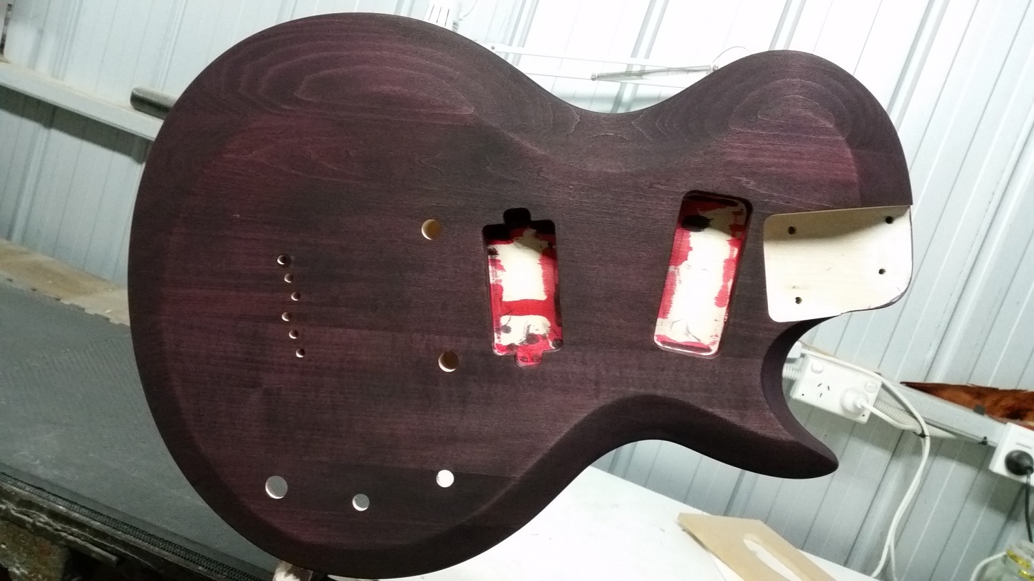 Asked Pabs to make a humbucker routing template (already had the P90 template from the last build). He asked if I was direct mounting the pup so he could adjust the template to suit. At the time was going to use a mounting ring, but the seed was planted and used his template as a master and made another with a smaller opening. If it doesn't work, can always go back to using a ring.