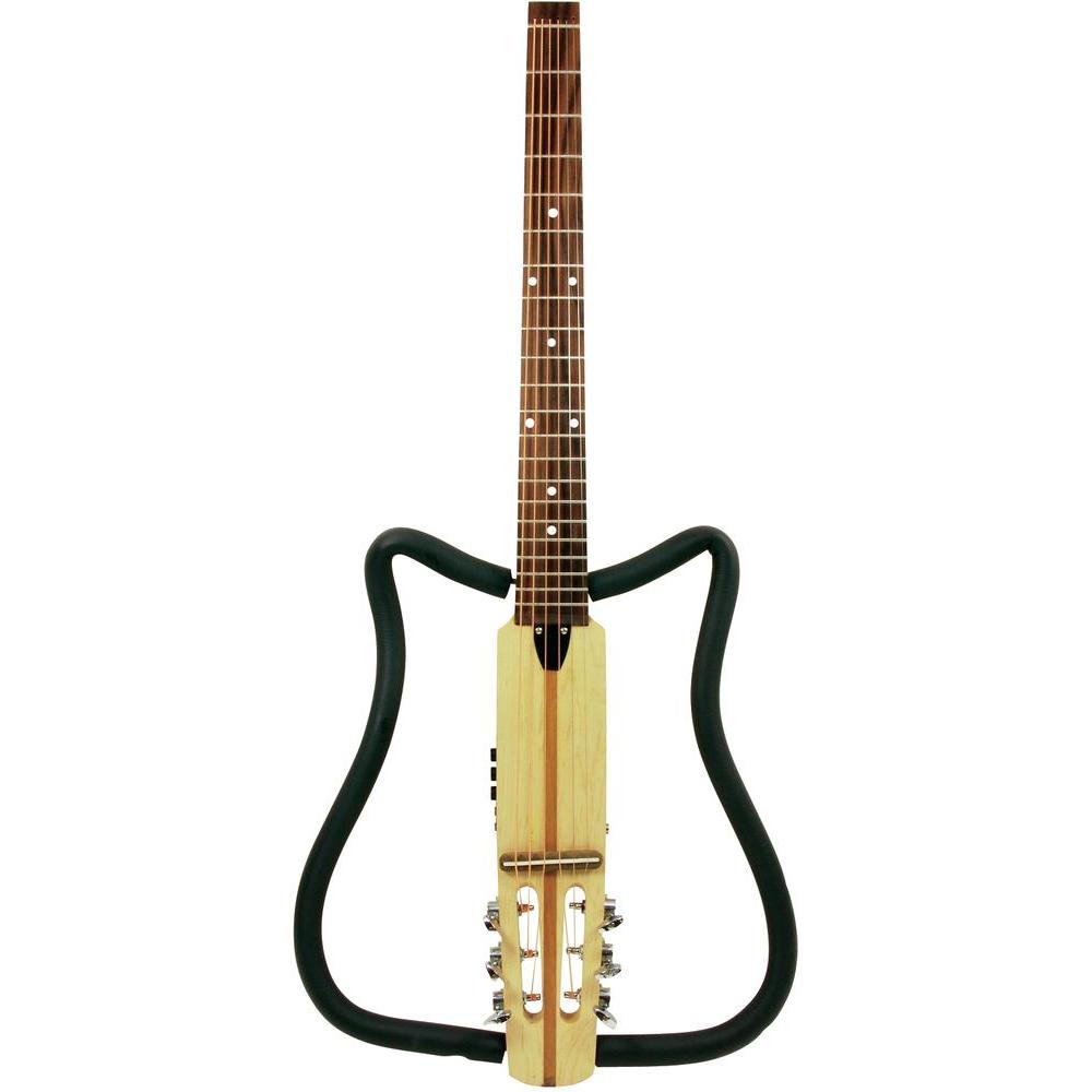 I'd be creative on the body fixtures. Concentrate on what 1) you actually need to support your picking/strumming arm and 2) what you need to support the guitar on your lap when sitting down. It doesn't have to look like a guitar outline. You only need a small portion of both the top and bottom curves to achieve this, so on top you could have a T-shaped attachment with the top of the T curved downwards, and an inverted T on the bottom also with the top of the T curved downwards to rest on your leg.