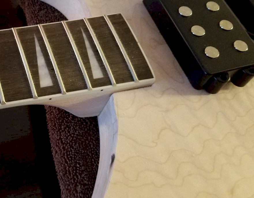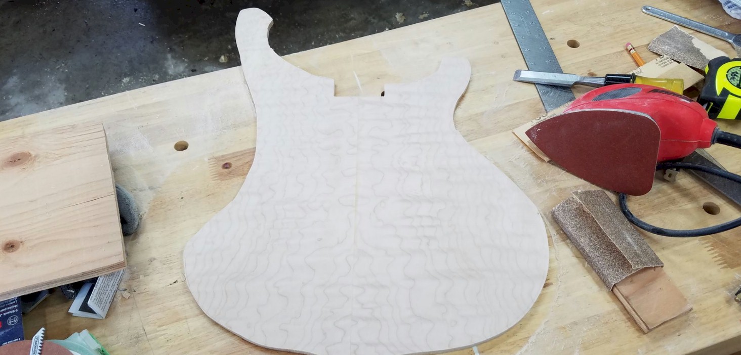 Note to self...when cutting the body shape out of the $120.00 piece of maple, take your time and give yourself plenty to work with.