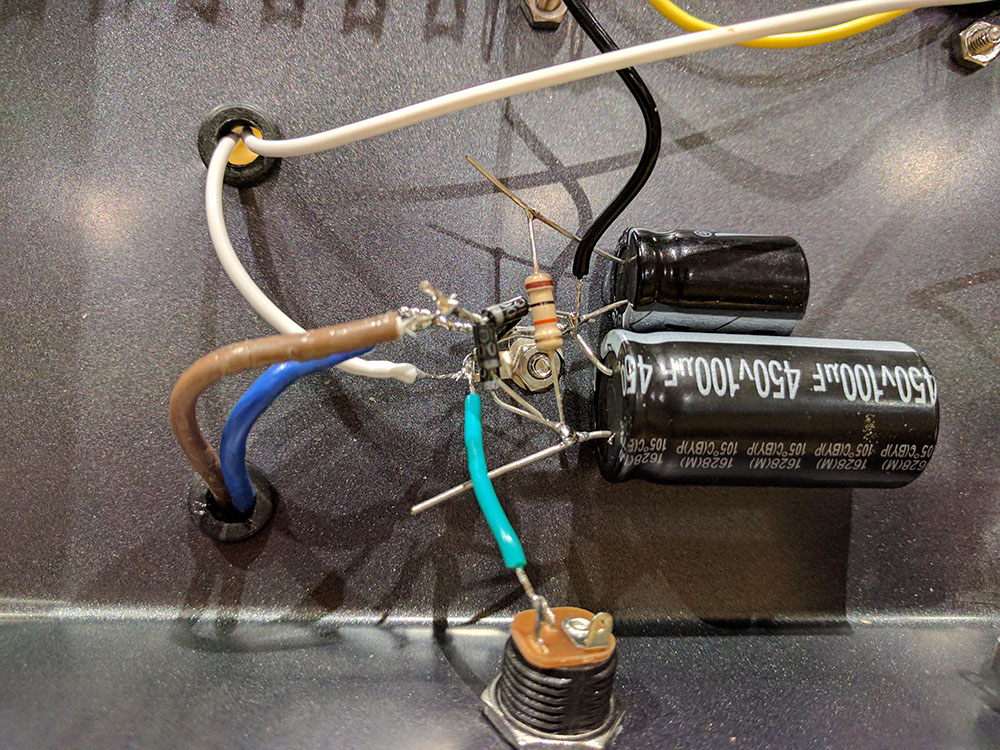 I think if I was doing it again (like the other lamington amp I have), I'd cut the wires going in there to length and solder that end on before adding the diodes over the top