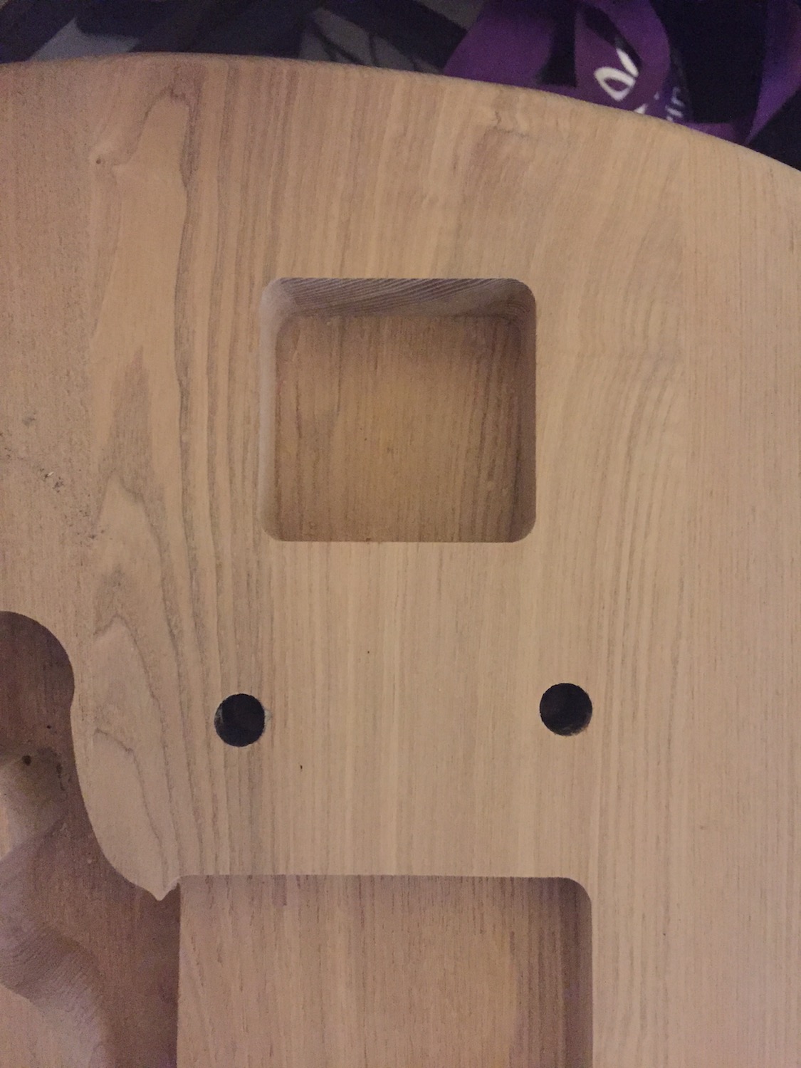 Body seems great, a little rough in places but nothing that will be an issue once I sand. Given I’m staining, the grain is okay – the one piece of wood that’s a bit different runs just on the lower half and will only be really visible from the front below the trem unit so not too bad.
