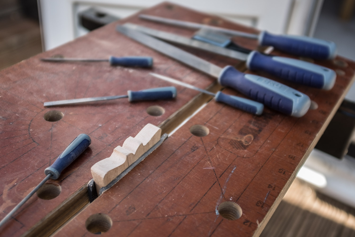 I asked Crimson if they recommend a grain filler to fit with their stains, the reply was "Applying the fourth or fifth coat of oil with some 1200 wet or dry should fill the majority of the pores that need filling. Hope this has helped" Not too sure I will be doing that on a veneer though.... but then again i think a few guys have successfully tru oiled the veneer using similar methods,, I haven't got the bottle to try it yet...