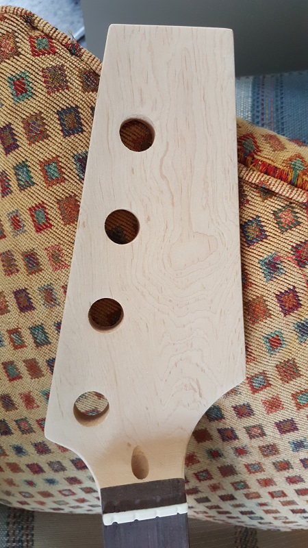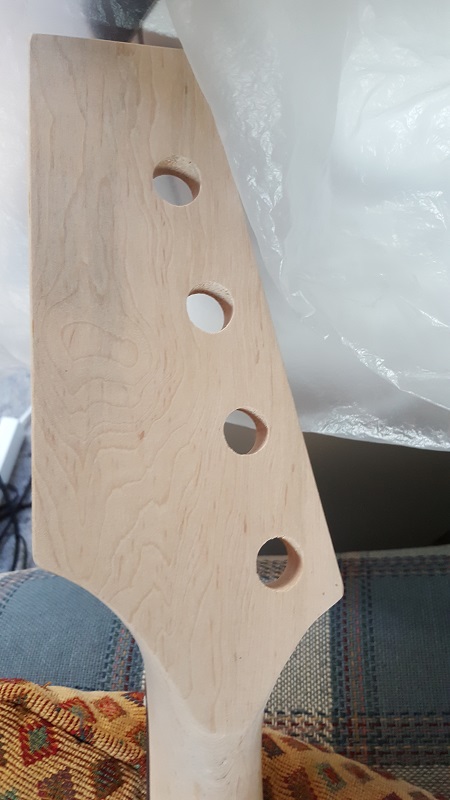 Four piece body...nice figure....think it will come up well with the Ebony Timbermate. One stripe on the back. Neck is nice tight fit...got the usual square heel in a round pocket end.