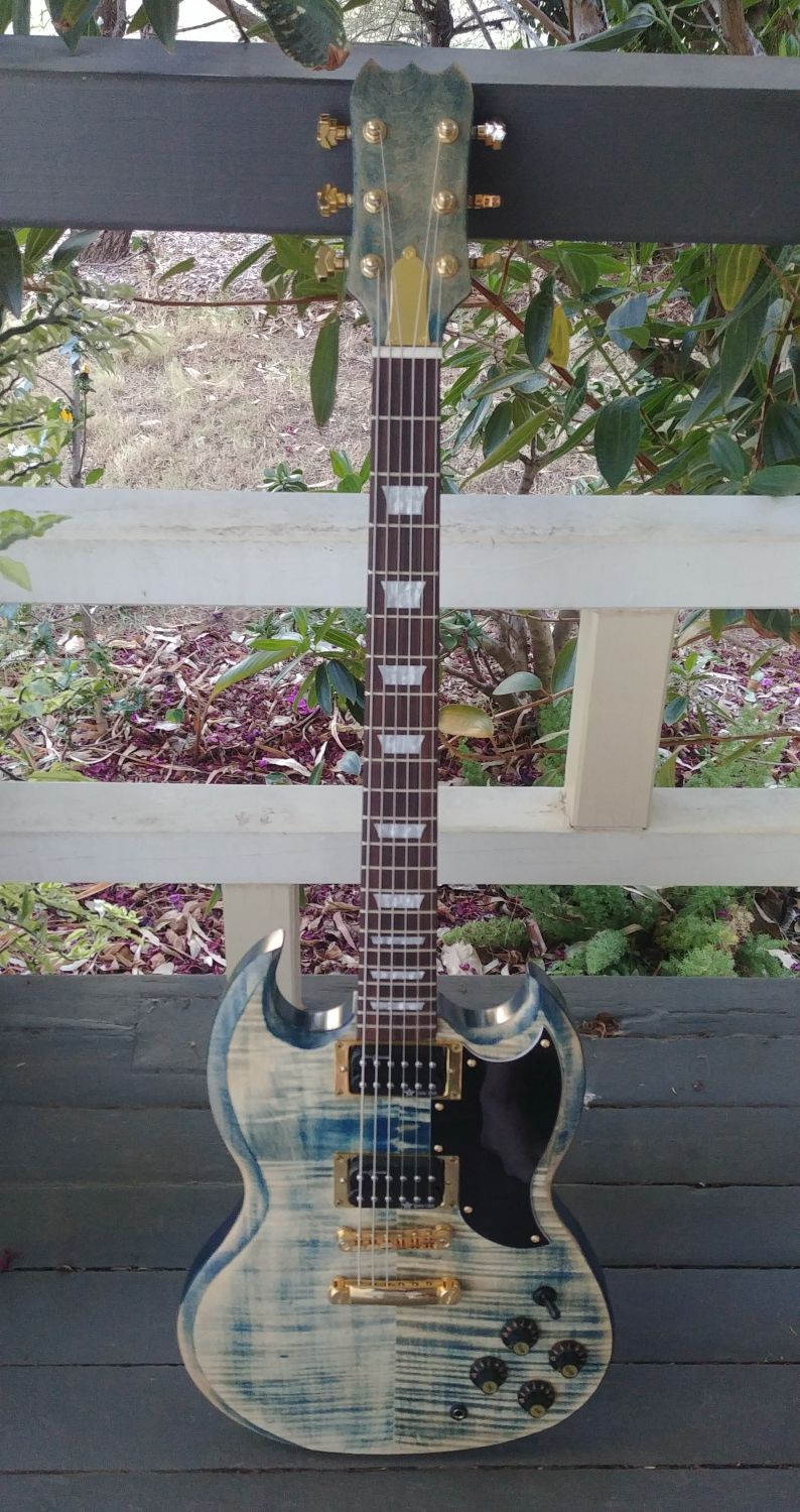 It took nearly a year to complete, here is my first attempt at building a kit: the Spalted Maple 'Halcyon' LP-1SS
