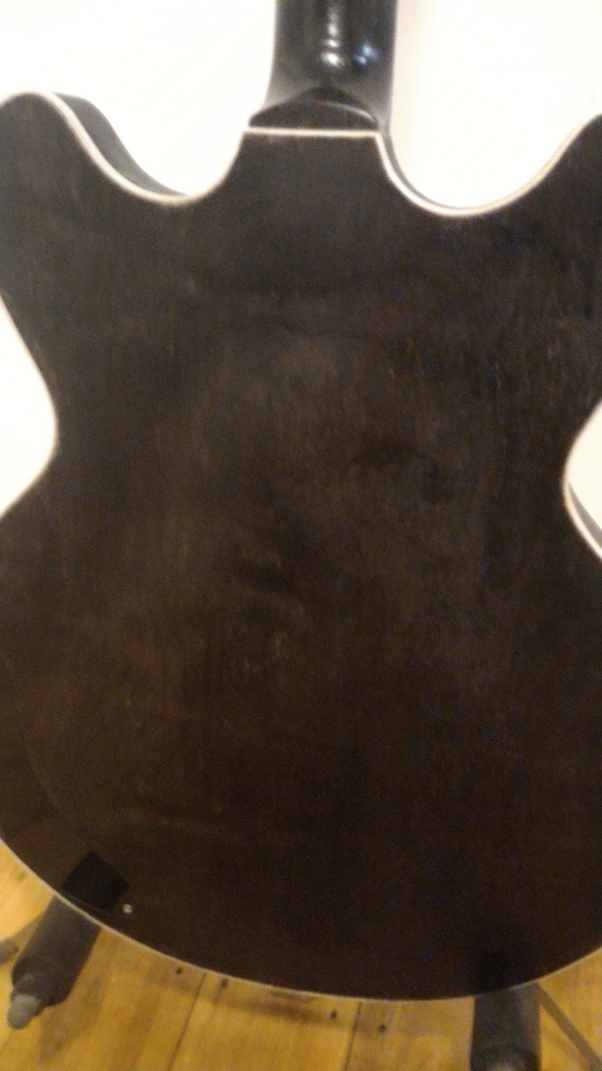 Neck has been glued in with Titebond Liquid Hide Glue, body and neck finished with Feast Watson Black Japan and 6 acrylic clear coats, hardware installed, strung up acoustically but no electronics as yet. There are (I hope) some pics at the end here for your comic relief! Yes, I know the cover plate is missing but hey, give me a break! If I had to sum the kit up so far in 5 words it would be "Should have sent it back" but, to be fair, a lot of the problems are not immediately obvious and only become so when construction starts.