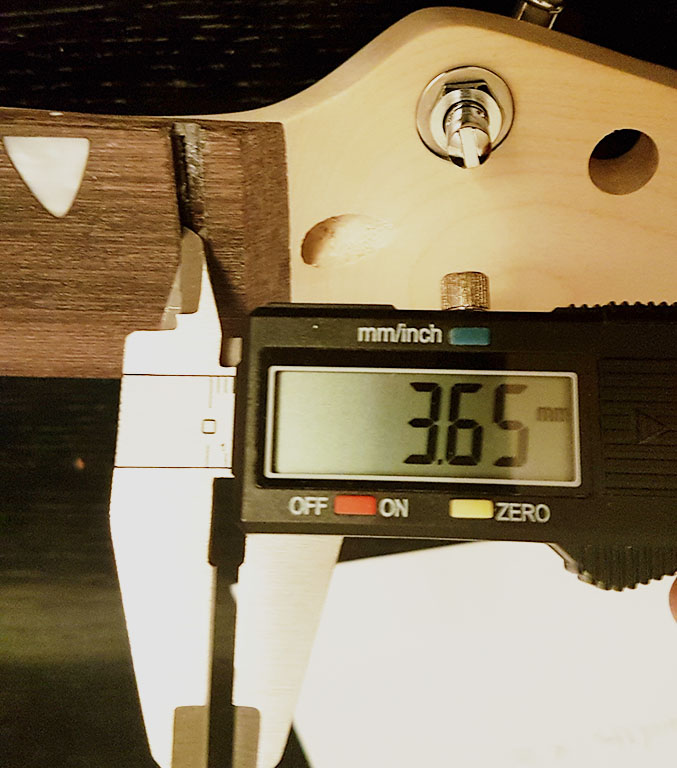 Yeah that’s a combination of slightly too big slot and slightly too thin nut. Theoretically it should be 3mm. A small shim should do it. You can find out what the fret measurement should be using the stew Mac fret calculator, that will tell you if you should shim in front or behind the nut.
