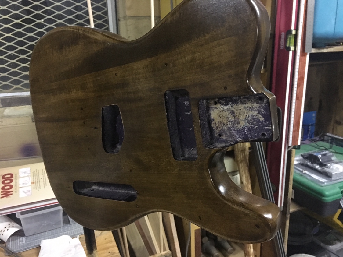 The maple block added to the heel helped keep the bulk of that step in place for joint strength, but allowed me to taper the rear of the body into the heel. The finish on Theo’s one never quite went right so at some point, future me is going to get the irrits with it and sand it back to redo. But that will be the fifth time it’s been sanded back and current me can’t face that at this point!