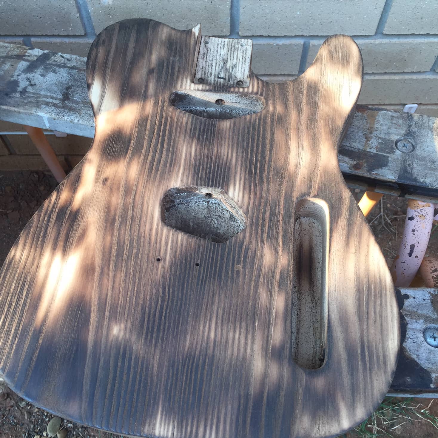 So I gave it a good hard scrub back with a wire brush today. It didn’t take as much black off as I was hoping so I gave it a sand back and it’s starting to get to where I want it. The fire and the brush really opened up the grain and gave it an awesome texture. Something I will be using in wood work more often now. Sanding flattens it out but I might give it another brush once it’s all done.