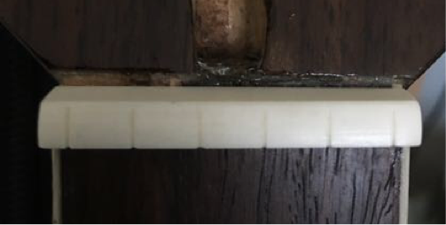 The plastic kit nut from which I used as a guide for my headstock veneer is wider than my ALLPARTS bone nut.