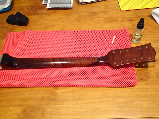 Neck finished, give it a few days to dry, a bit of a polish out and away we go, i will get the tuners on.
