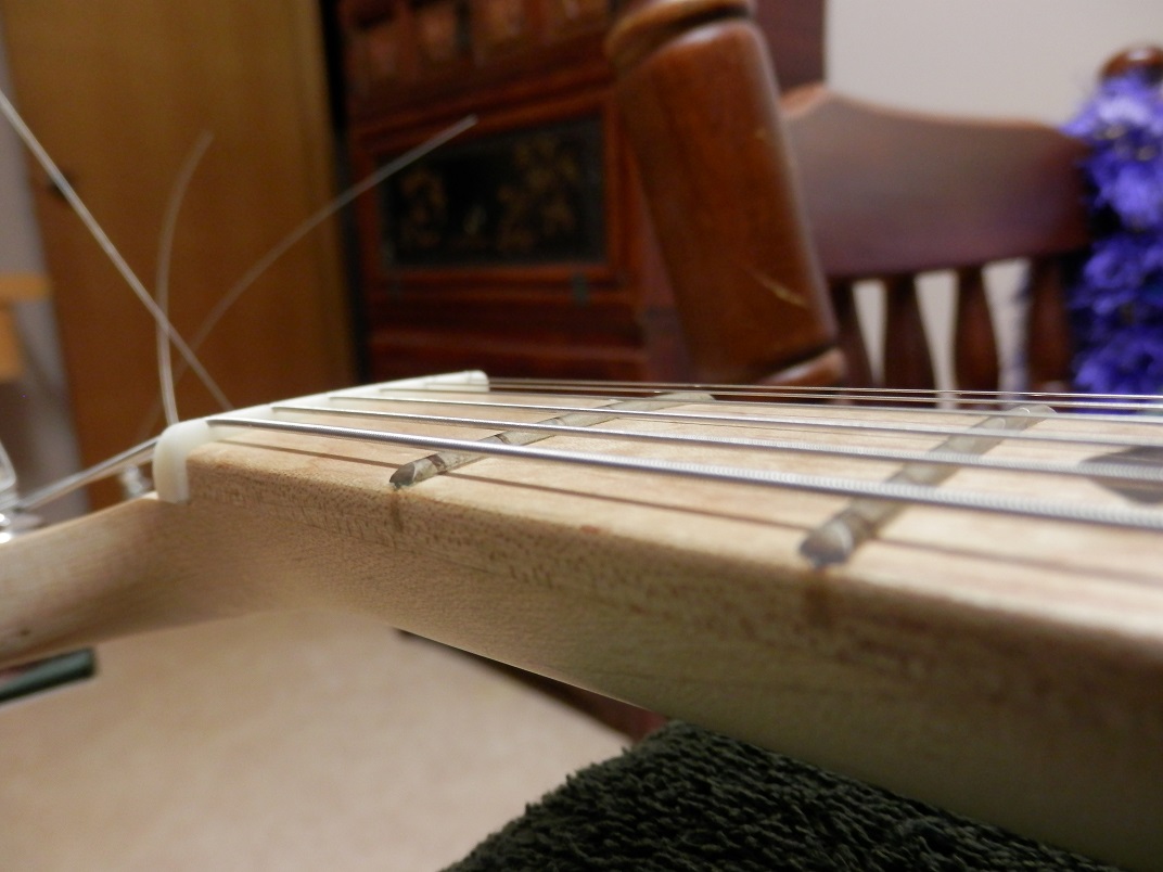 Action at the nut was a bit ridiculous, so I set about making it a more realistic level. It was especially bad on the treble side: