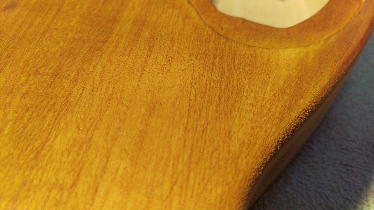 Youtube said that if you use a wet cloth and a soldering iron the wood will swell, esp if it is bare, so i power sanded out all the scratches and went over it with 240 and then 400 grit