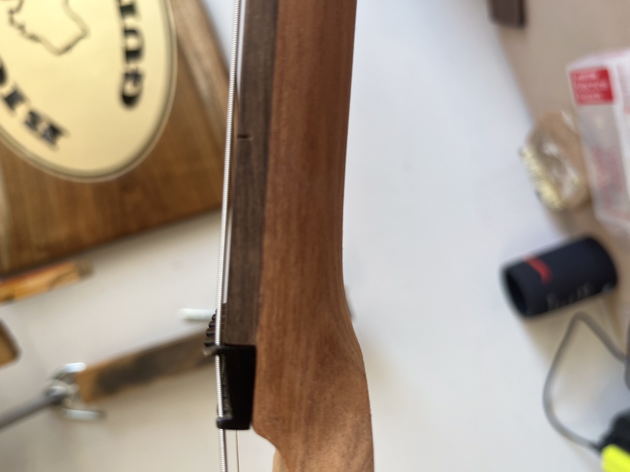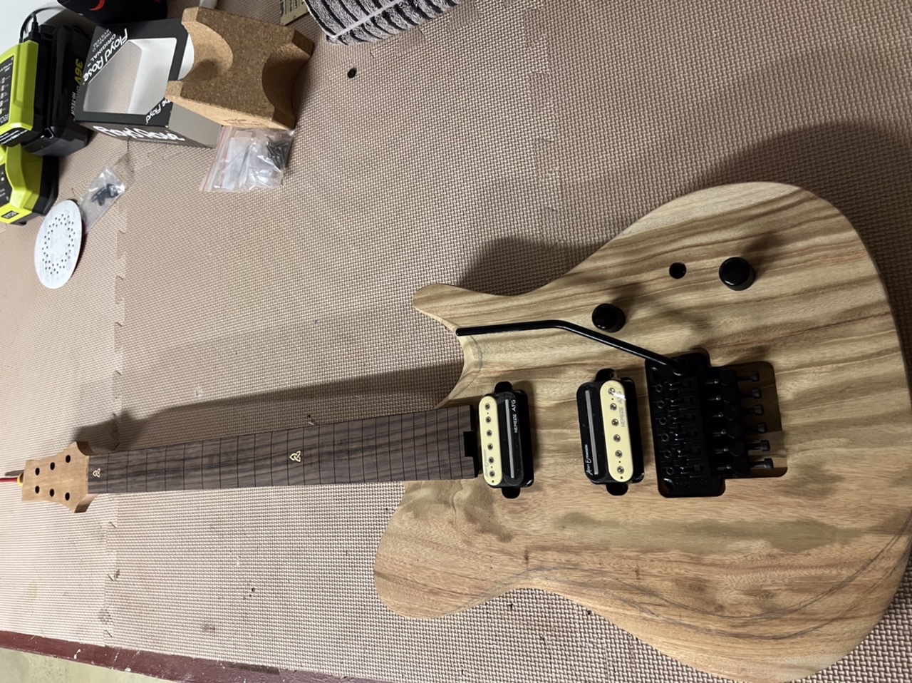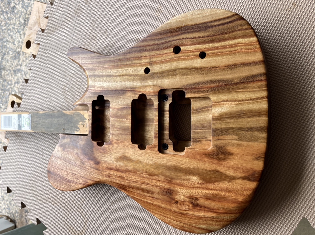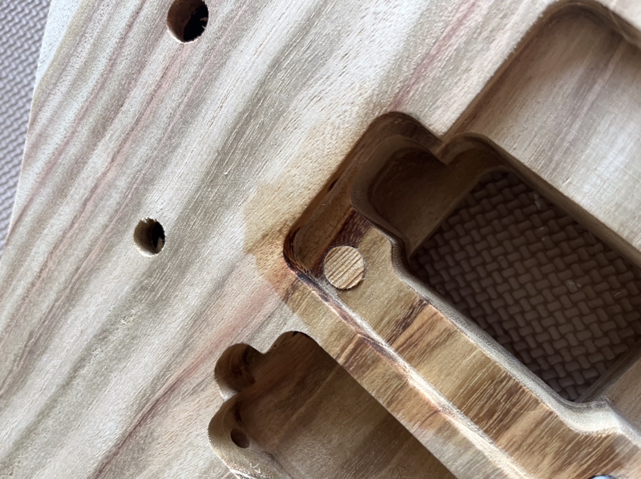 So quick plug and redrill and trem now fits like it should. Doing a full build before final sand and finish on all my guitars now as usually go gung ho on the finish and then find a pile of issues once it’s going together and end up scratching.