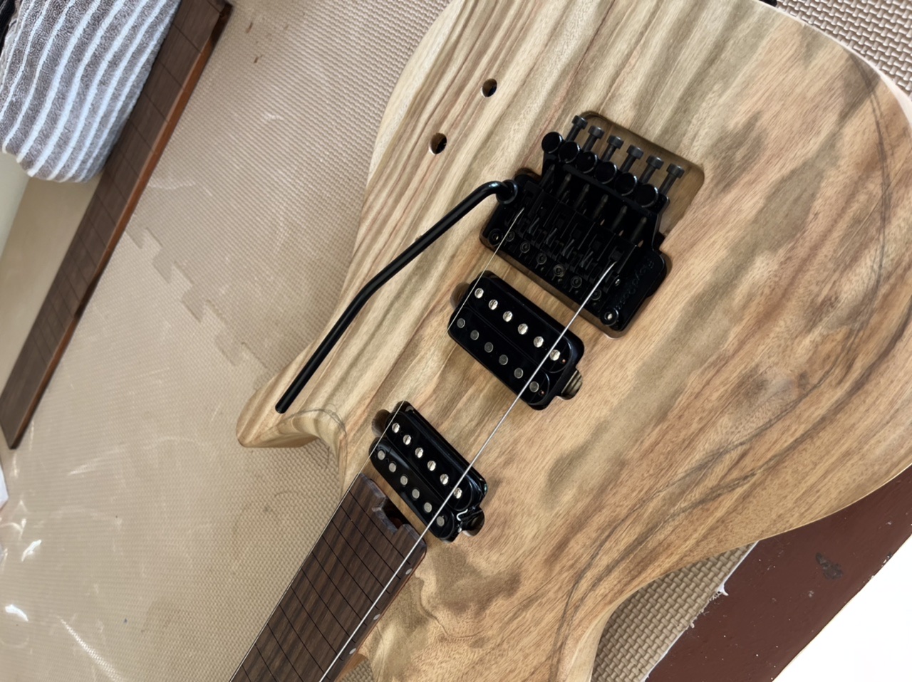 Have to put a piece of veneer in under the locking nut as a tad low. May have to get a shorter trem block as the spring height at the moment means it will be a shirt grabber.
