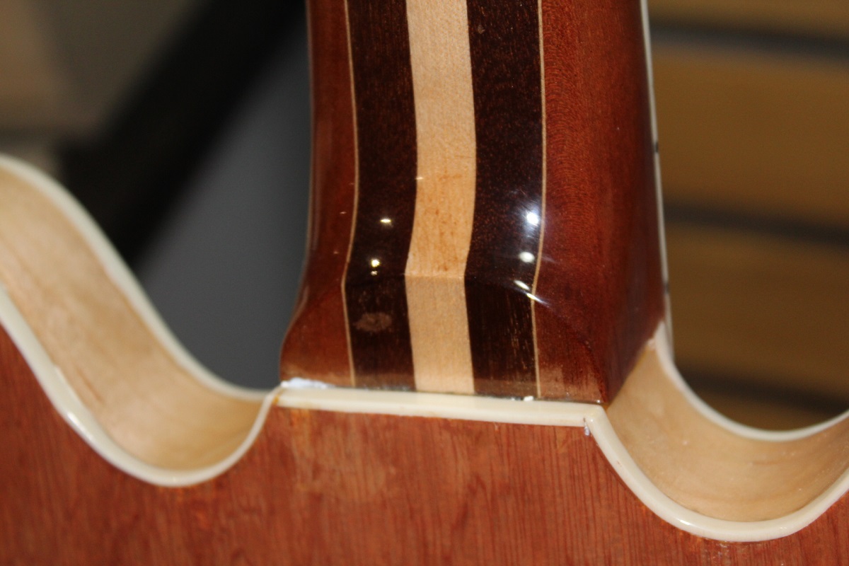 I looked at using maple but the price was ridiculous so I opted for mahogany. It is made from 2 laminations of mahogany 'plank' glued together and then the end cap glued to that.