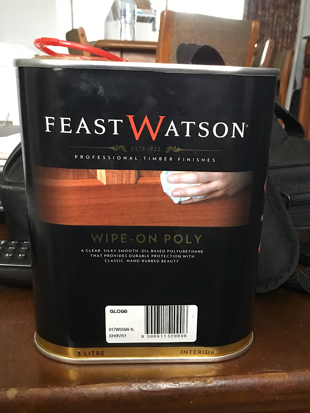 Then I gave it a coat of Feast Watsons sanding sealer and sanded it with a 600 grit. When I was happy with that I gave it many coats of Feast WatsonÂ’s gloss wipe on poly, with sanding and wet sanding between coats. The sanding sealer was magic, it hardens up all the loose fibres of the wood and makes it easy to get a good surface for painting. Unfortunately I sanded through the finish a couple of times but got better with every extra application of poly.