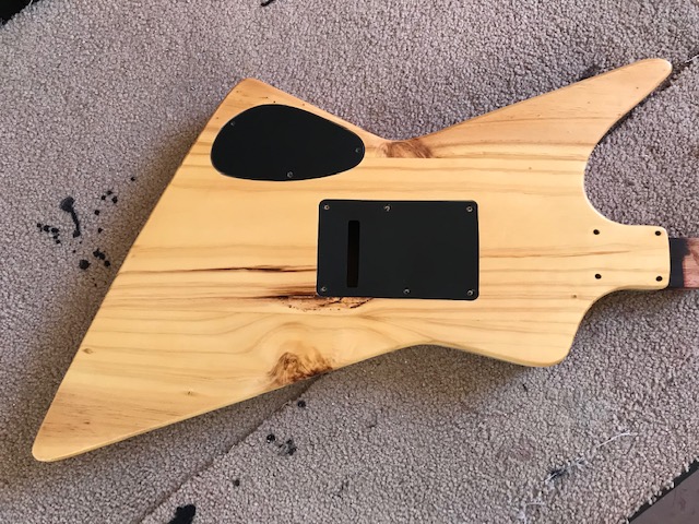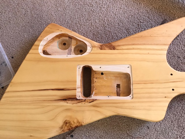 I rebated the body routings to fit the control cover and the back plate for the tremolo. Now time for a few more coats of tru-oil.