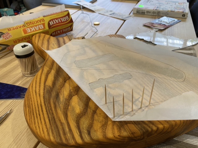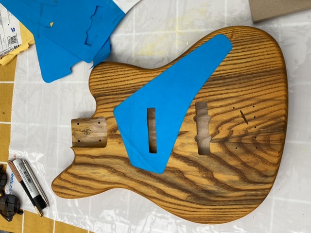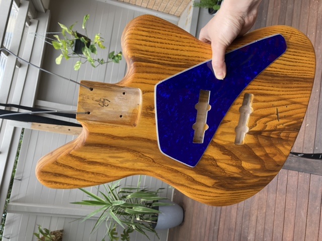 Pickguard shape my own - It may change once I see the stain/grain combo. I’ve ordered a blank dark blue pearloid guard from Musiclily.