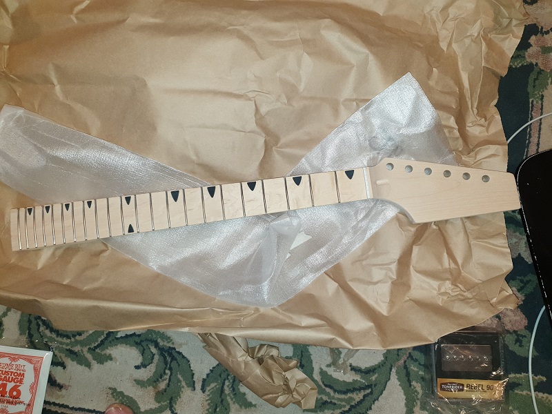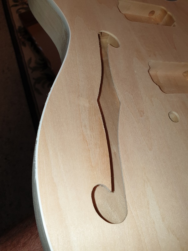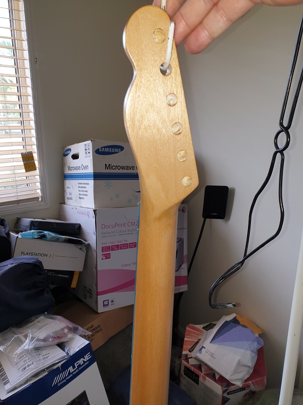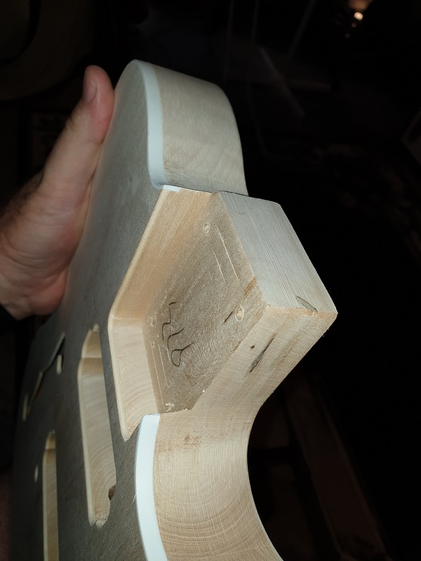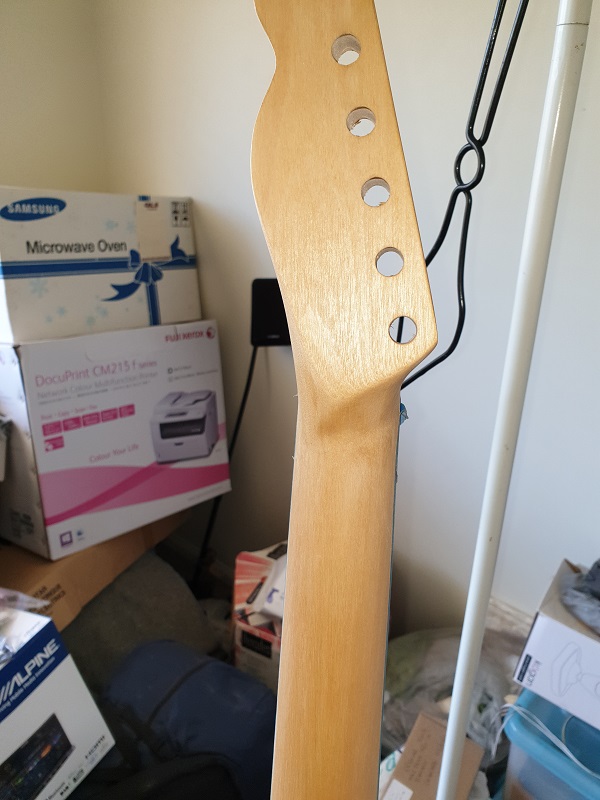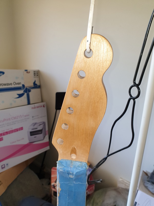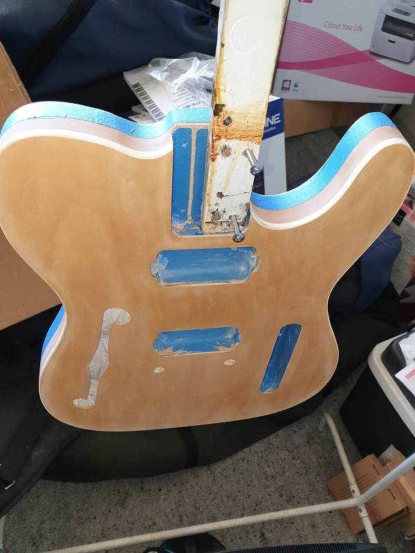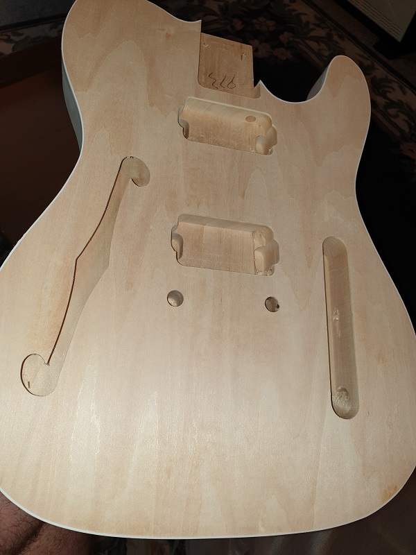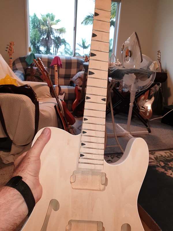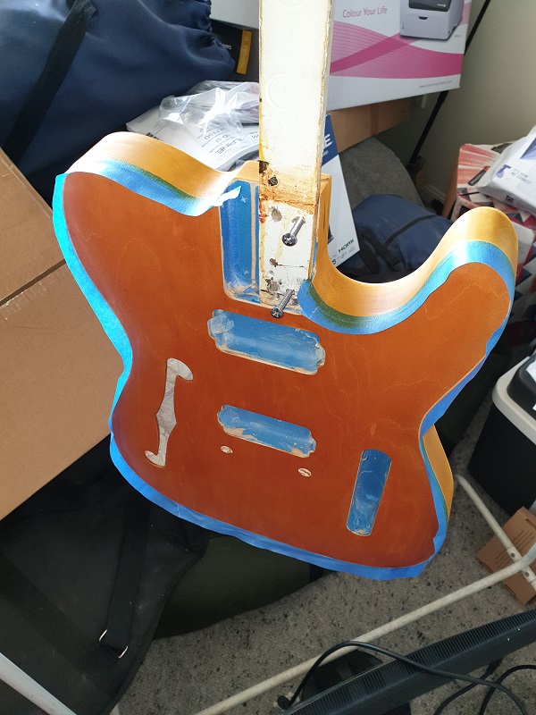 EDIT:- The headstock is from a Tele Thinline template I found in a pile I had saved on my computer. For the first time on a build I cut the back of the headstock to shape as per the template as well. I looks different.