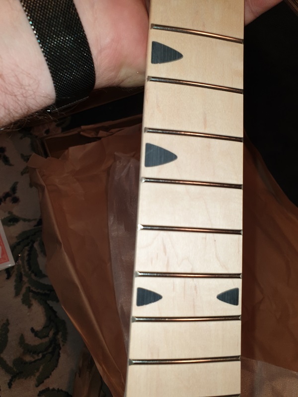Lots of taping, paint brushing poly on edges and binding.....and we have a 3 coats tru oil neck with a maple stain headstock.