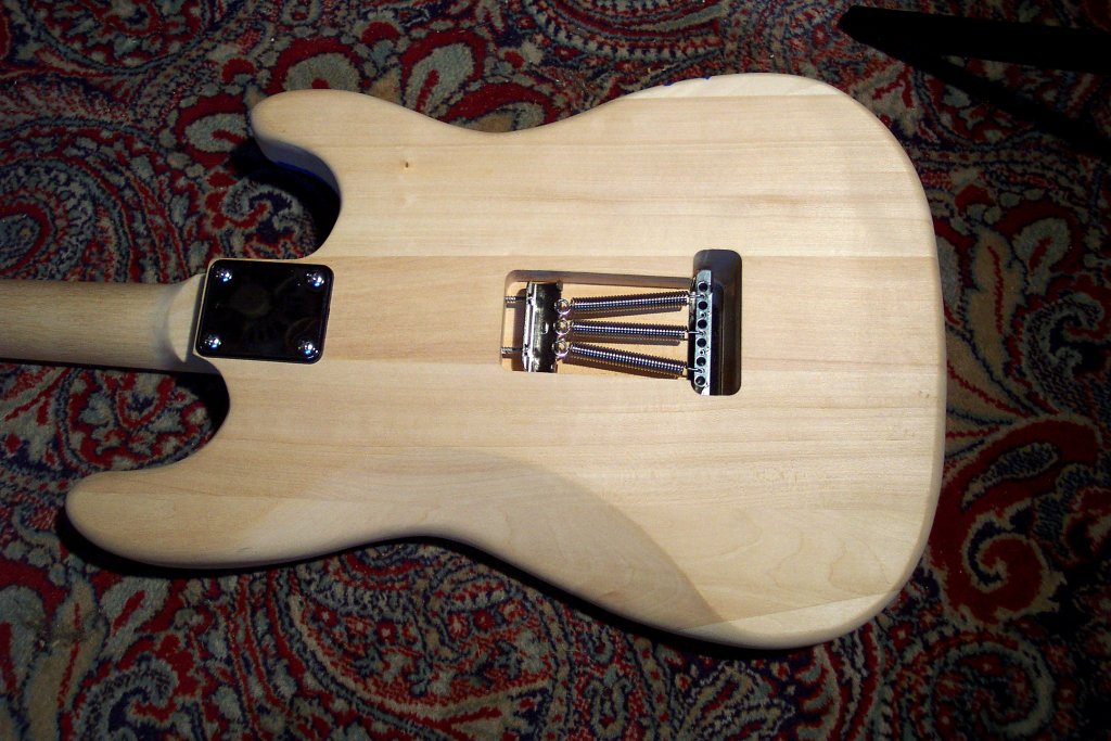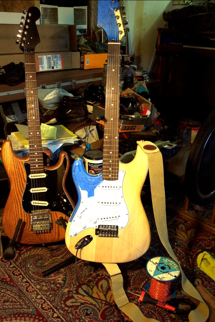 This is the fun time. When you are in prototype mode and I swear you can bolt a strat neck to a board. ( and I have mocked up necks on chunks of wood and put bridges and such on and made playable logs.). So she plays, I hooked up the electronics and ran it into a Peavey classic 30. So funny how bad I am at it. I am laughing at that "Reverse Hendrix" thing from earlier in this thread because I played it right handed (upside down) and it is surprisingly easy hahah, I have never touched a lefty guitar and you can actually jam right on it right handed if you are used to it (with a little thought). I have chosen some of those hipshot tuners at a few different lengths/heights and hopefully those will be the 6 but I may swap it around, but when those show up, I will do the 4/2 thing to the headstock and then string it up again and play around with it. Then I will know if I want to use some string tree's, I am not against them but just experimenting ha. Simon you mentioned wrapping the strings down the post, that is what I do with my strat now. I need to actually address that someday. It orig had a horrible I think Khaler string lock thing on it that was functional but so not what should be on a flat non angled headstock. But I don't know if someone built my strat and put that early charvel neck on there or if Wayne even did that ( I would love to find out someday). But with that crazy washburn wonderbar (which I grew to love). That strat had incredible tuning stability. If I can dial in the strats "break angle" by replacing its old schaller tuners with varying height ones, I may entertain trying one of those "guitar nutbuster" things and see if it will allow me to back off the wonderbars tuners (have them bottomed now so non-use) and see how it does.