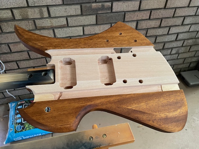 For the custom MBM-1 build, which only has the bridge cavity route, I have a Tonerider Birmingham Zebra Humbucker. I'm also trying to source a 6-position rotary switch and a toggle switch so that I can try a Varitone circuit and a coil split. I think that will give some good sound options considering there is only one pup! There is also lots on space in the control cavity to house it all.