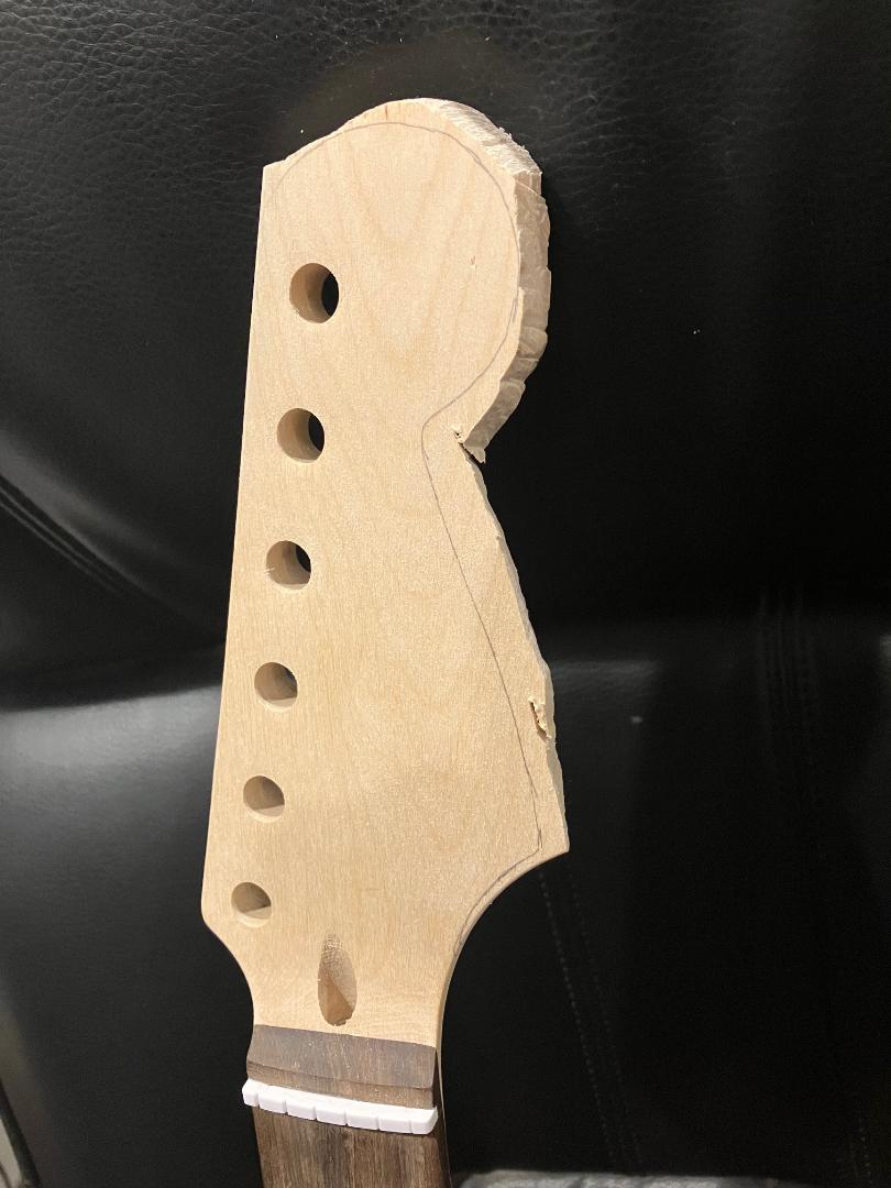 Maple is tough. I am not good with coping saw and have not used one for a headstock. I have done it several ways, but my go-to first tool is a jig saw. I get it to roughly the way you have it...but a jigsaw in 1/2” maple is imprecise (at least in my hands. The bottom of the blade tends to wander on curves, so I can't get too close to the pencil line.