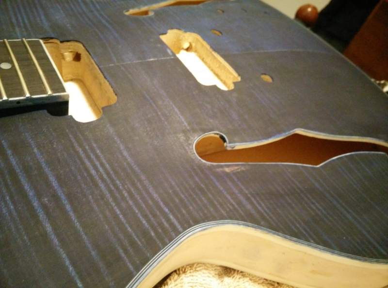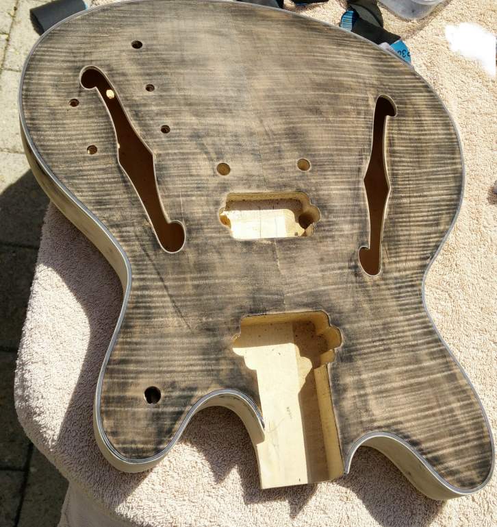 I used the incorrect type of ink for the black, and it's biting me now. IMHO the body is very dark. And I am not sure I am game enough to take more of the veneer off to lighten it. I think staining black first was a mistake for my skill level.