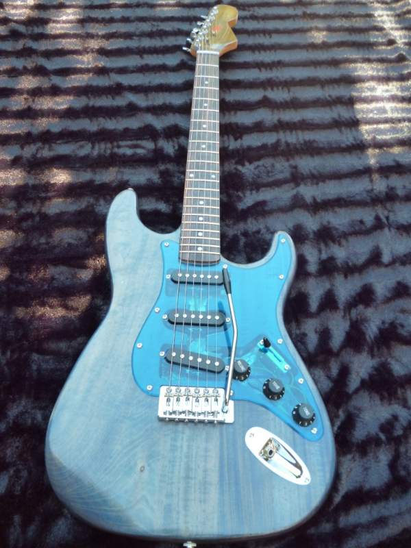 Hi this is my entry just for fun, got no chance but wanted to show off Pablo's awesome clear blue pickguard and tremelo cover.