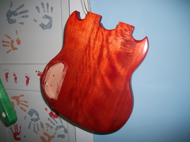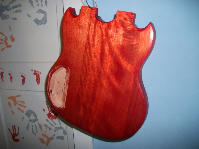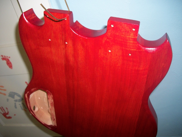 Next will be the special 3rd base colour that came with the Wudtone-cherry flamenco kit. Again, the lighting isn't great in my build room and these pics aren't doing any justice to the depth of this finish. I will take pics in natural light after she's complete.