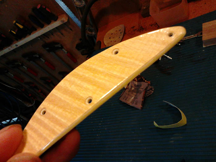 Found one that has about 100 different styles of veneer 0.8mm think going to go in once i have stained the wood to match it. i have a scroll saw for the outline how would i go about the pickup hole. also any recommendations on a clear finish would be helpful.