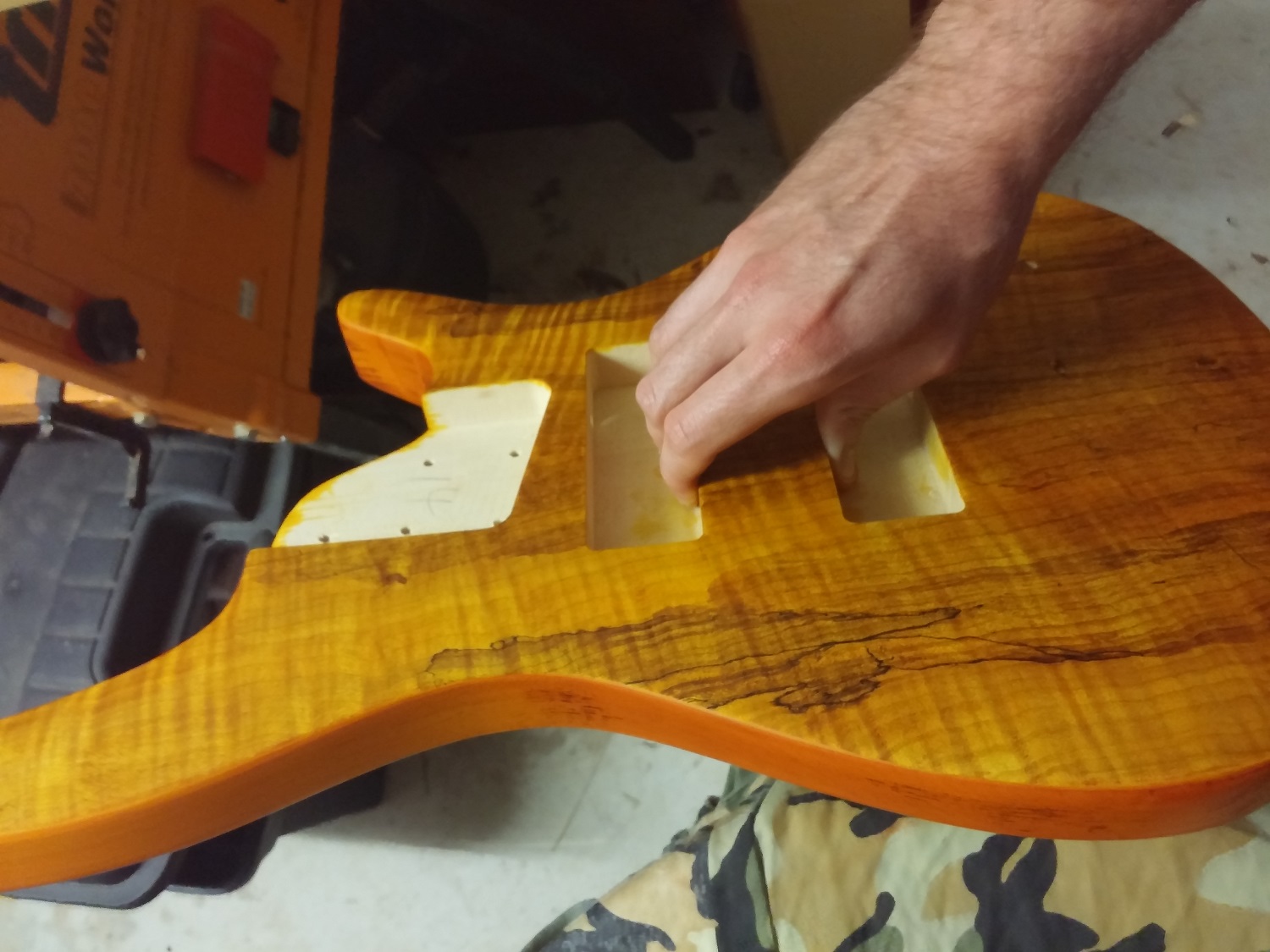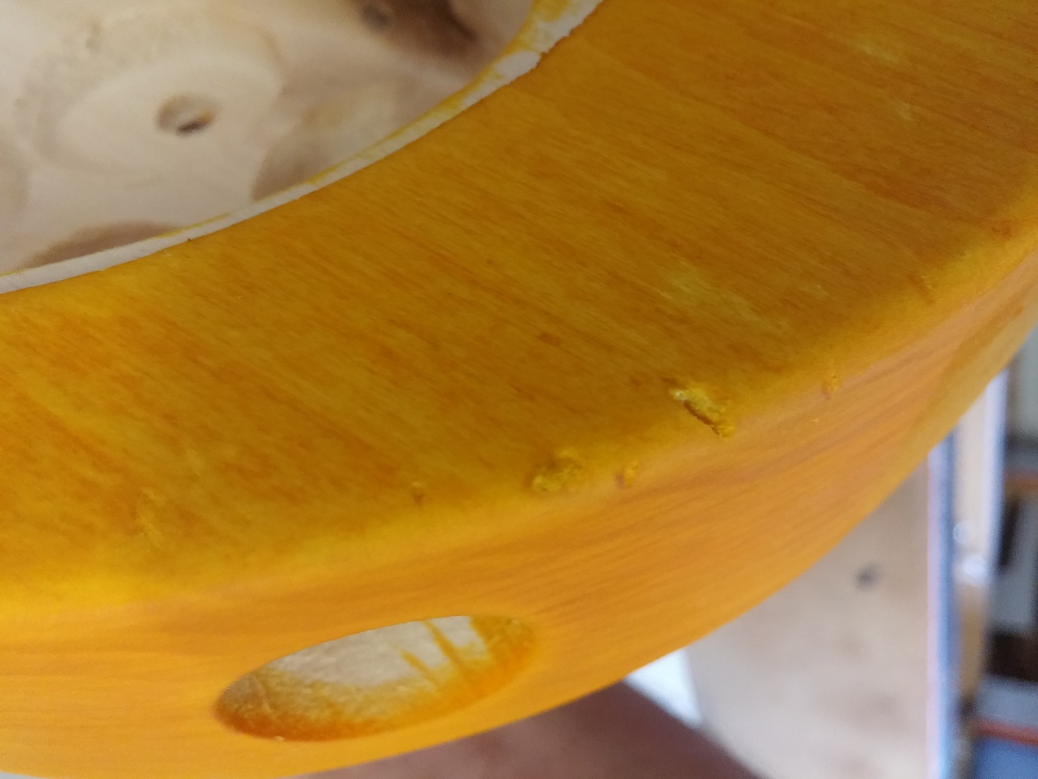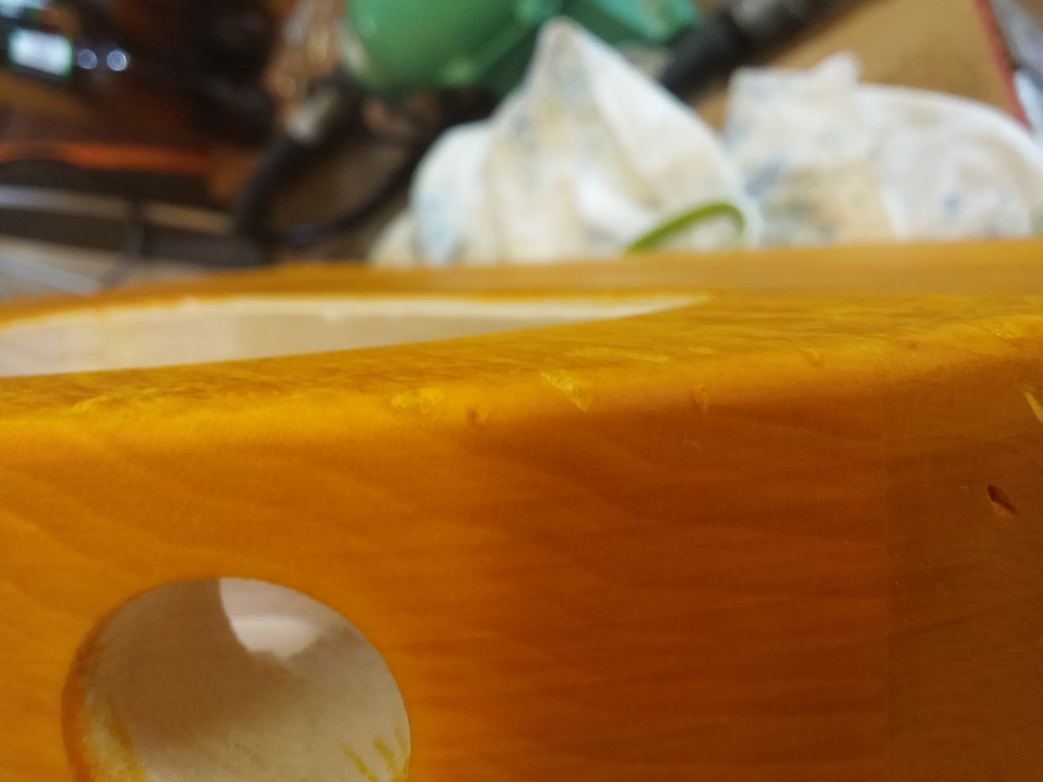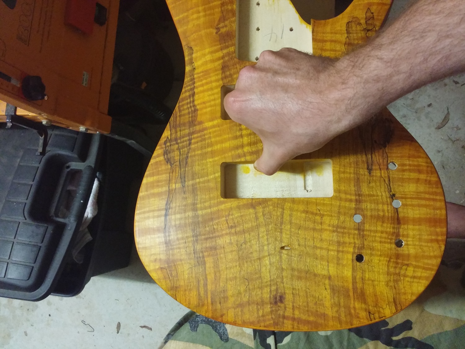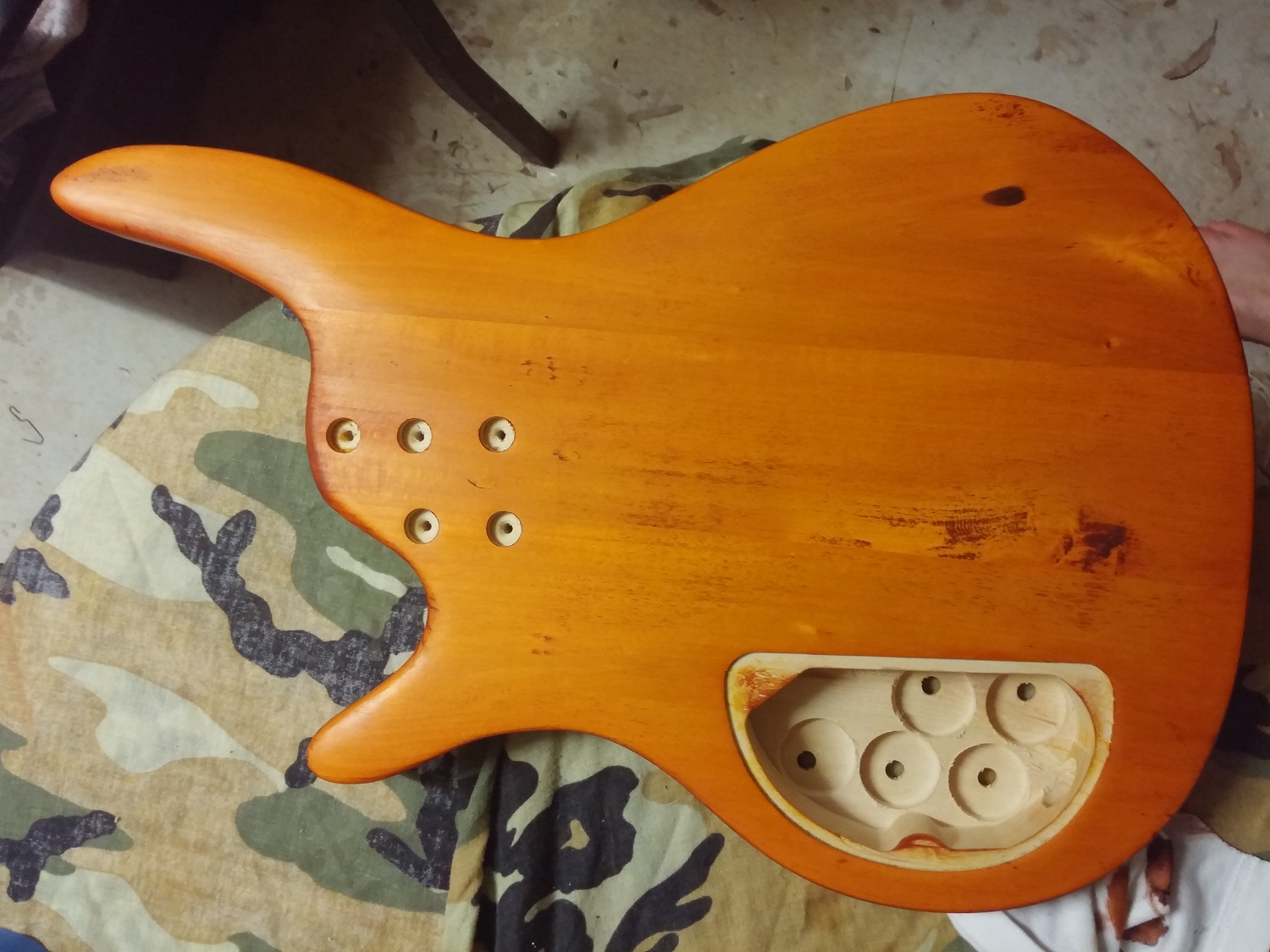 After a lot of sanding I managed to get pretty much everything out and back to fairly normal, might have to try and stain the body again though. Luckily the top wasn't damaged, just the back of the body/sides.