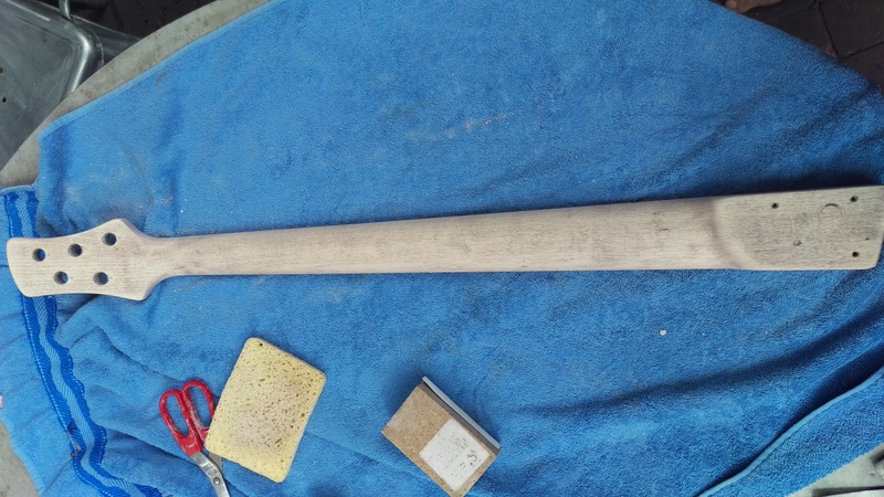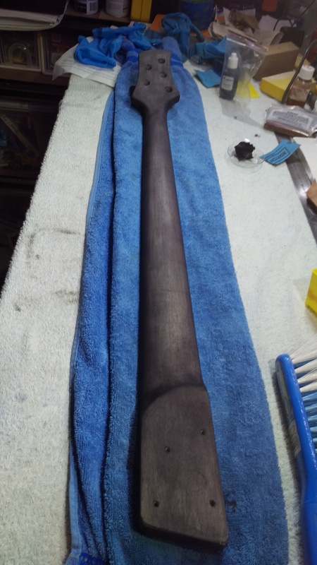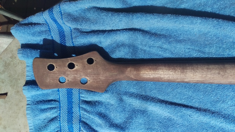 It's not dark enough yet, but I'm planning to stain the neck, and then pretty much finish the stain bottle on the body and neck.