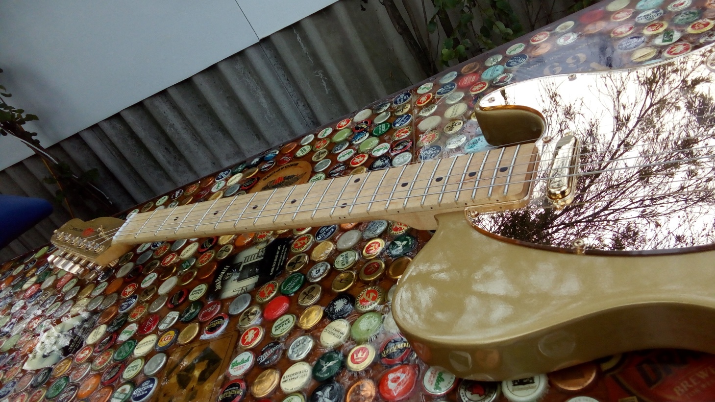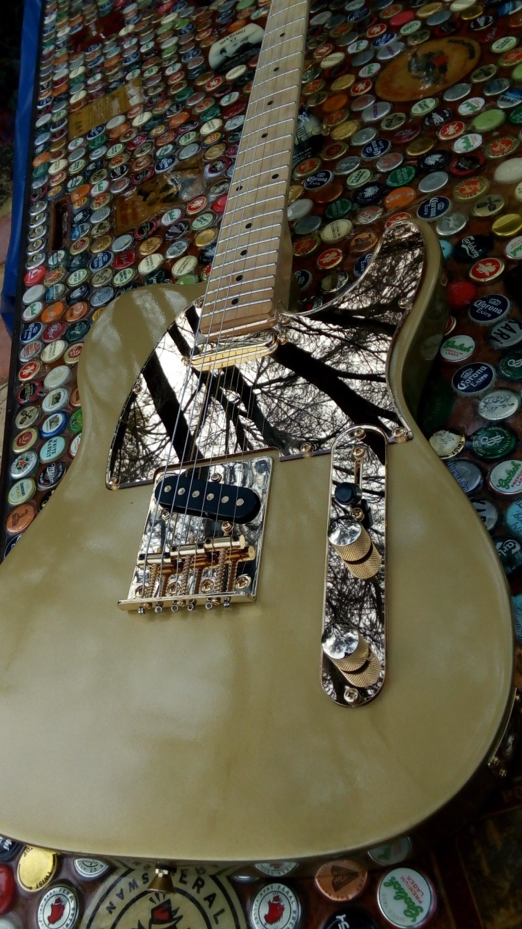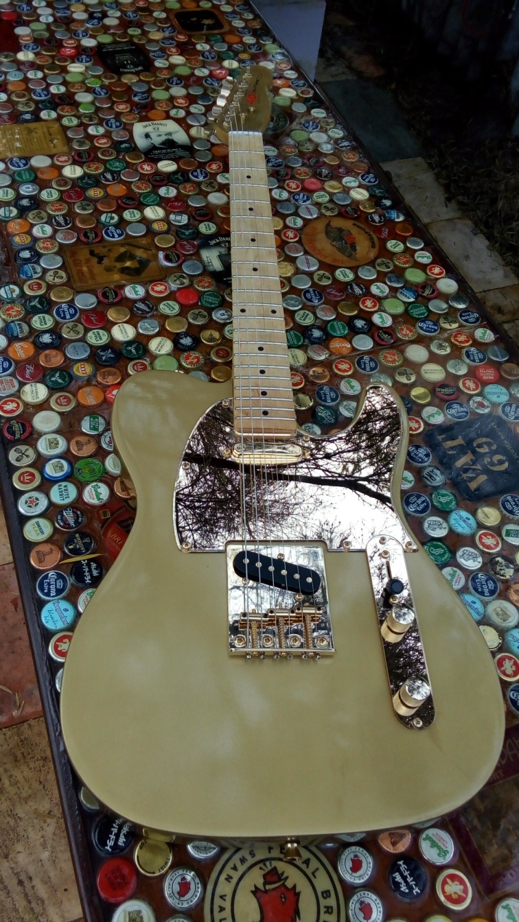 @ Ponch the pickguard and control plate are clear gold plastic with the mirror gold backing, have to ask Pablo will know more about it. He buys the sheets and cuts them for me ! I've already used a red mirror pickguard and blue one