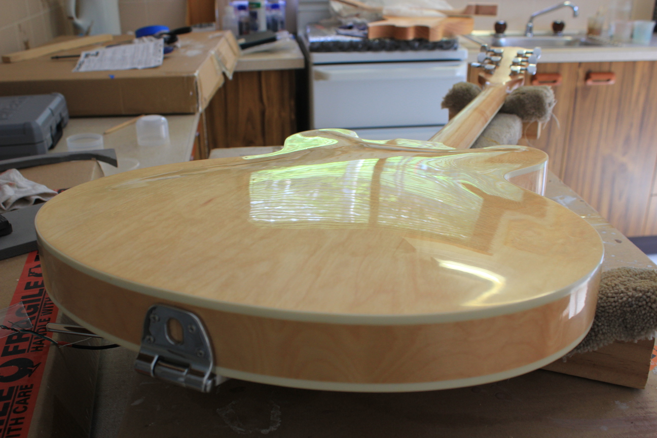 Note that I intended this guitar to be a workhorse instrument for gigging with, hence the reason for the way it currently looks, but, I might give it more of a glossy finish at a later date, I'm really liking the way the finish turned out so far, it turned out better than I expected given the amount of trouble I had with the Gold Strat finish, incidentally, I will see if I can get the Gold Strat finished next year because I think I can salvage it.