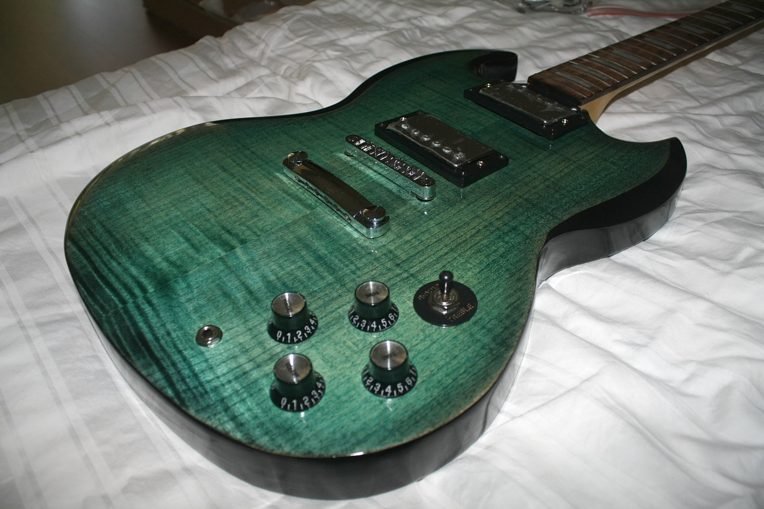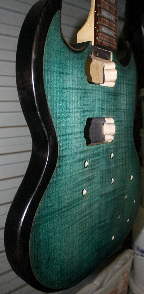 Push/pull potentiometers are on order, and once they arrive I'll start soldering up the wiring. I assume it's still a good idea to shield the control cavity on a guitar with humbuckers, so I should probably order some more copper tape as well.