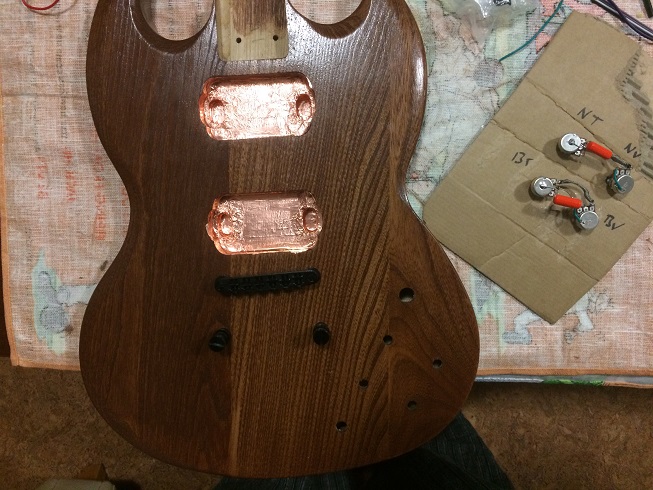 In other news the tuning pegs are on the headstock and the neck and body buffed with dingotone wax. Just waiting for hardware and shielding to arrive. Hopefully I will have it loaded this time next week!