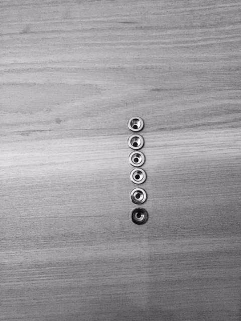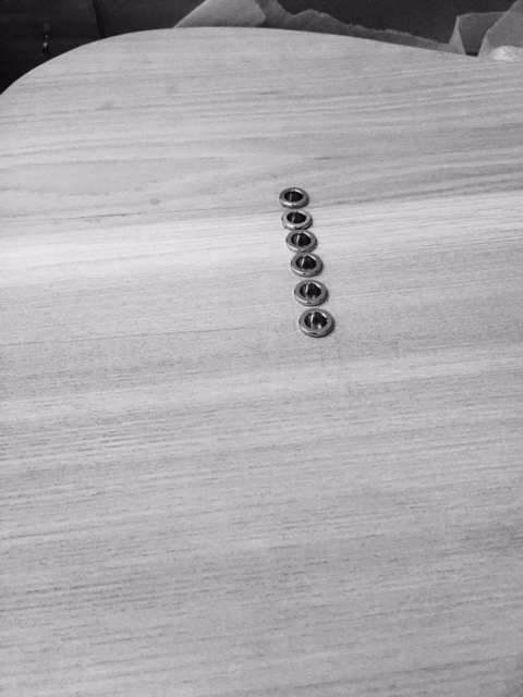 Did you drill all 6 holes all the way through from the top? I'd been told to just drill the end two holes all the way through, and the other 4 most of the way. Then on the back use the bridge plate to mark the centre positions for the centre 4 holes using the two outer holes as a guide, and drill those 4 holes part-way through from the back. Almost guaranteed to get a neat line of ferrules.