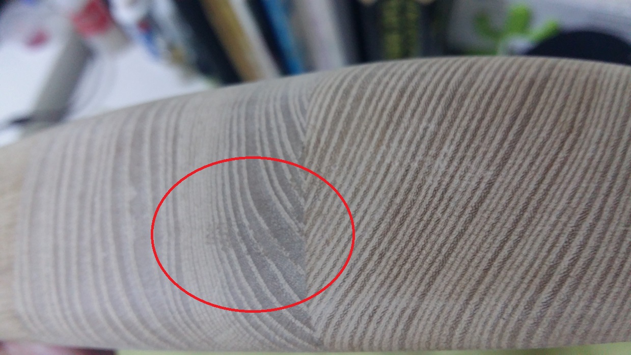 Photo 3 - this has two different grain patterns converging around what looks like a small amount of glue or filler. Same sanding process as above 2 points.